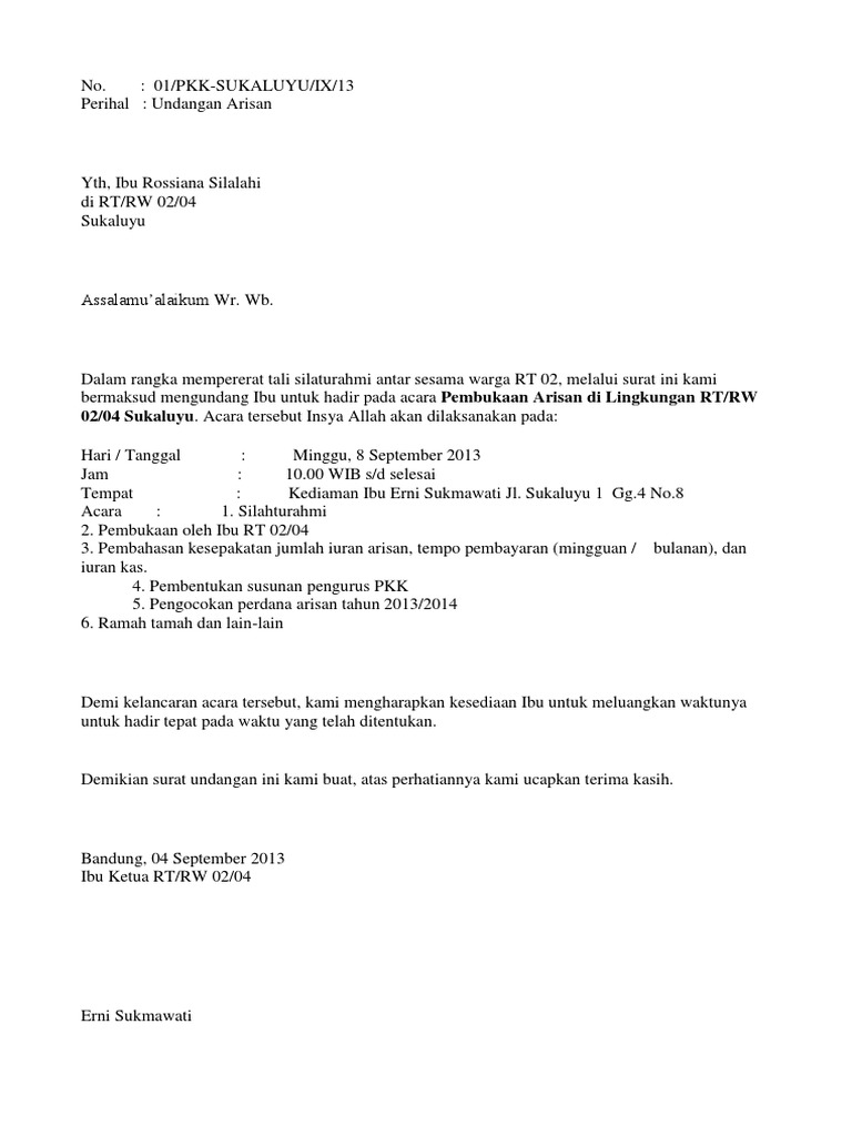 Salam pembuka ditulis di bagian kiri, tepat di bawah alamat surat dan di atas kalimat pembuka isi surat. Jul 01, 2021 · jika dalam pertemuan ini menghasilkan gagasan signifikan, kemungkinan besar barcelona tinggal mengirim surat kontrak kepada messi untuk ditandatangani. Salah satu bagian yang wajib ada baik pada surat resmi maupun surat tidak resmi adalah salam pembuka. Surat undangan setengah resmi merupakan undangan yang mengatasnamakan perorangan yang ditujukan ke perorangan maupun instansi atau organisasi. Jun 29, 2021 · namun nomor, perihal, lampiran, serta tembusan tidak wajib dalam surat tidak resmi. Tapi prediksi yang bermunculan, proses itu takkan mudah. Mar 02, 2018 · ketemu lagi nih sob, pada kesempatan kali ini kami akan membagikan informasi bermanfaat seputar kumpulan tema acara yang menarik. Hi intan, entering april it i always feel cheerful and happy over the previous. Jul 24, 2021 · contoh surat undangan tidak resmi dalam bahasa inggris dan terjemahannya. Feb 16, 2021 · surat undangan setengah resmi; Contoh surat setengah lurus : Dengan berbagai macam contoh surat permohonan izin untuk peminjaman tempat ini bisa dijadikan acuan. Cirebon , 24 februari 2012.